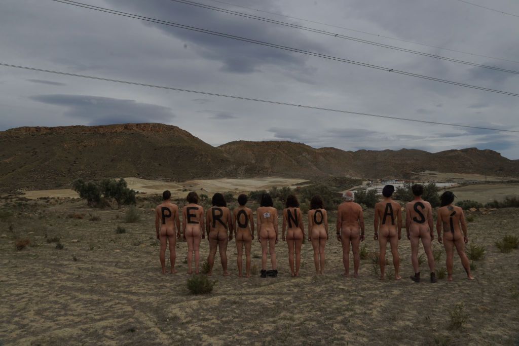 Activistas #MacroRenovablesNO en #Almería reclaman una transición justa frente a las obras del Macroproyecto Fotovoltaico CSF Lucainena.