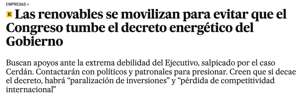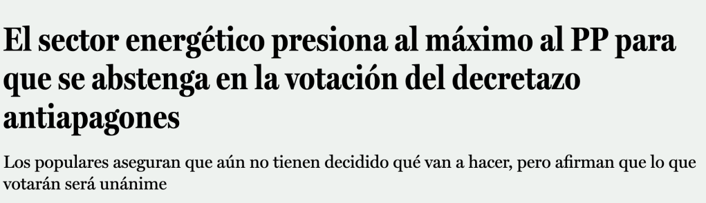 Sin ningún pudor, el LOBBY ENERGÉTICO PRESIONA a los grupos parlamentarios para que el Real Decreto Ley 7/2025, sea ratificado en el Parlamento el próximo 22 de julio.